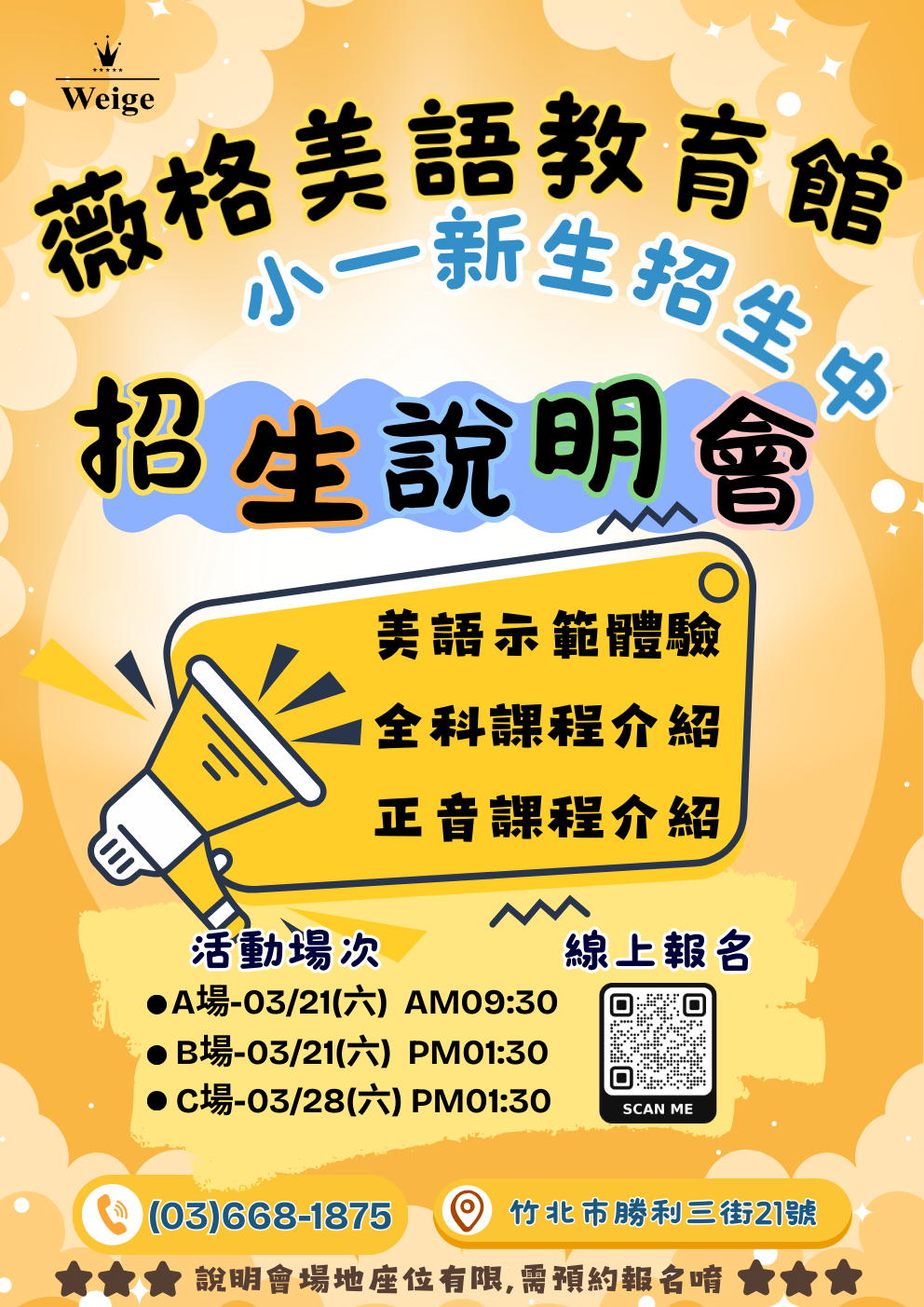 誠摯邀請爸爸媽媽與寶貝一同參加【薇格美語體驗課程 × 招生說明會】